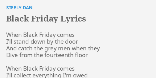- Steely Dan Black Friday Lyrics Genius Lyrics . Black Friday (Steely Dan Cover).